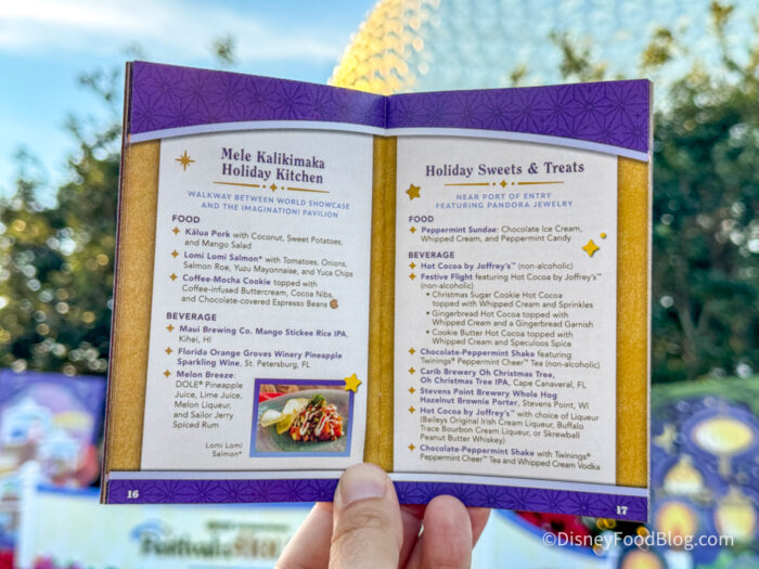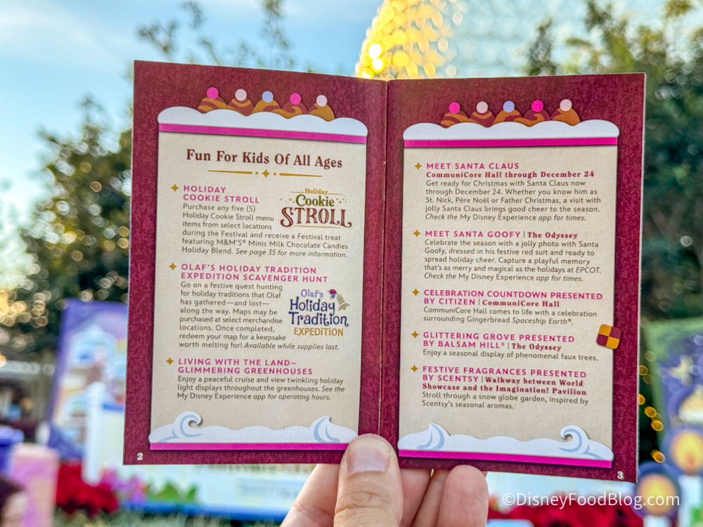 It’s time to take your first look at this year’s Festival of the Holidays passport to see what you have to enjoy this holiday season at EPCOT. This handy festival passport will map out all the different food booths along with their respective menu items at each. Let’s get a closer look!