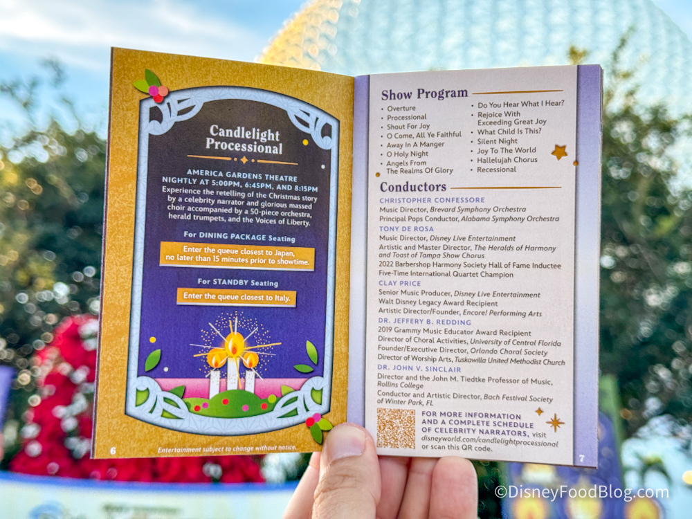 Of course, you can find out all the details about the Candlelight Processional! This page lists the showtimes and the entire show program.