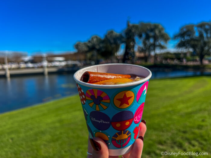 This was absolutely delicious! It’s very fruity and tastes a lot like sangria without the alcohol. It’s served warm, and it will warm you up nicely, which we love for cooler days. The cinnamon, brown sugar, and fruit all went together SO well.
