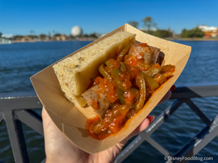 There’s also a variety of drinks at the Italy booth, including beers, wines, sangria, and the Italian-inspired Blood Orange Margarita. Now that we’ve taken a look at the menu, let’s dive into the food itself!