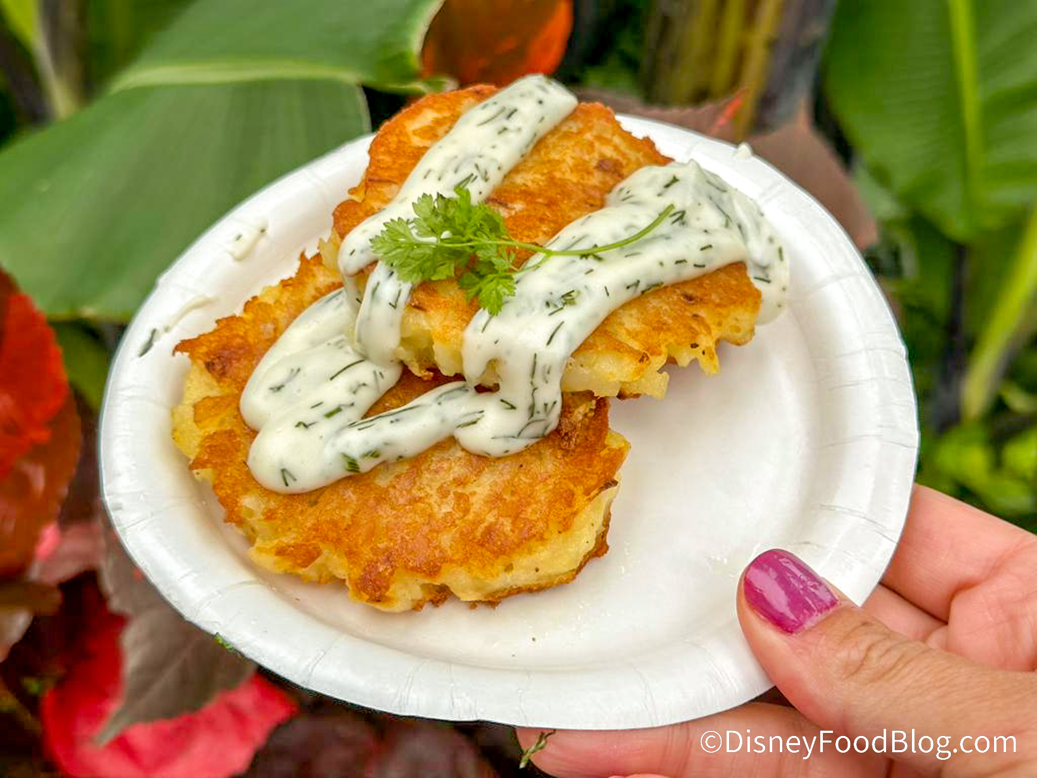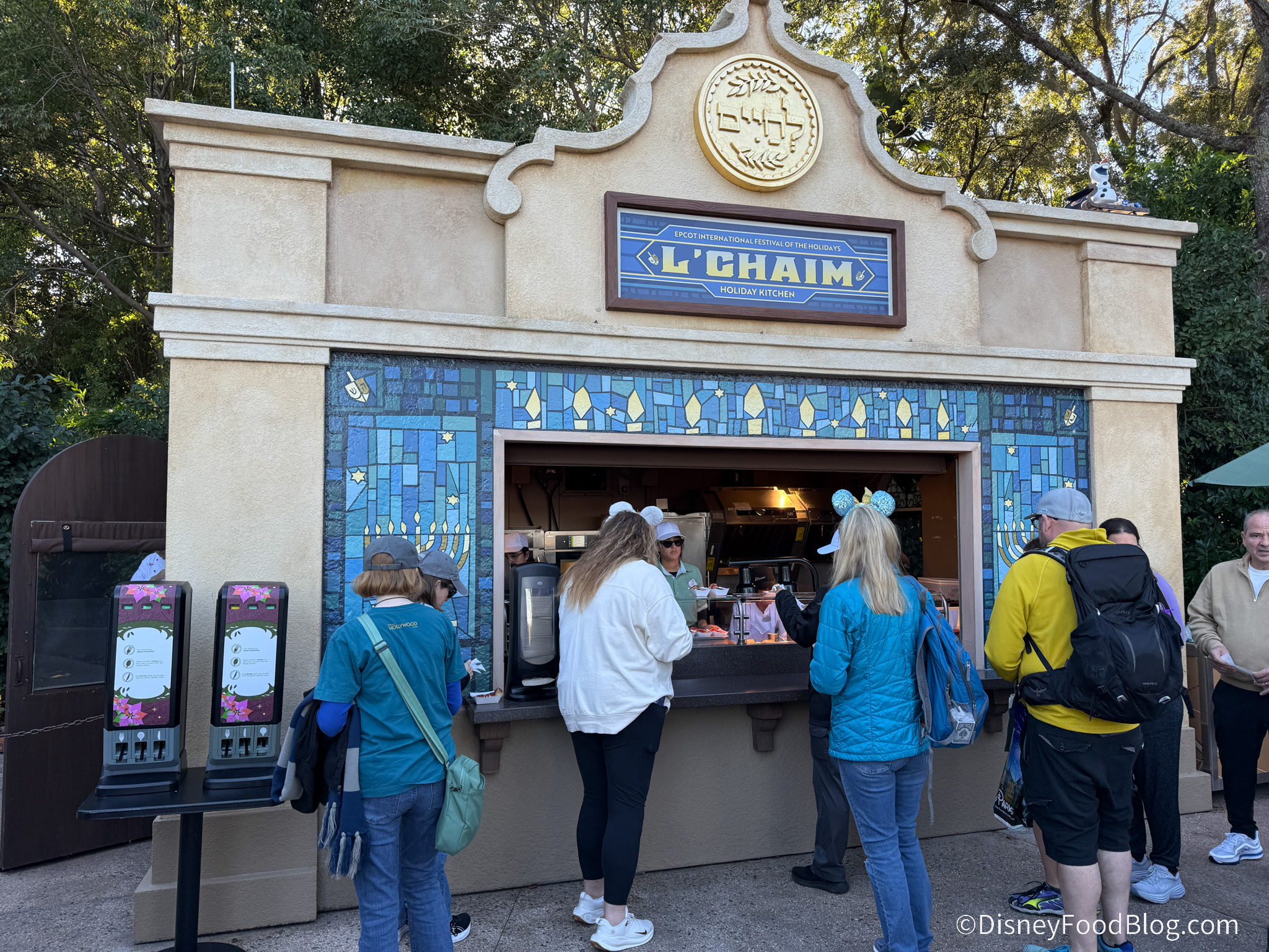 Happy Hanukkah! We’re greeting you from the 2025 EPCOT Festival of the Holidays, and more specifically from a place that has offered up some of our favorite Festival eats year after year: the L’Chaim Holiday Kitchen!