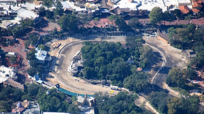 One of the two lands coming is Piston Peak, the Cars-themed land. This area is coming to the permanently closed Tom Sawyer Island and Rivers of America. The river has been drained, and with some overhead shots, we can see that Disney is working on clearing the land. Clearing the area is usually the first thing we see when new projects are being built.