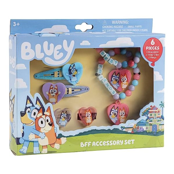 Do you have Bluey fans you are shopping for? This Bluey Jewelry Box Set could be a great stocking stuffer. It features 6 pieces: 2 rings, 2 bead bracelets, and 2 snap clips. The items are made with safe, non-toxic plastic materials that won’t harm skin or emit any unpleasant odor.