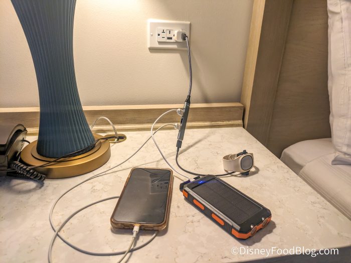 We love this multicharger that is compatible with MagicBand+. We always struggle to find enough outlets to charge all our devices, which is why we love this multicharger. It gives you more space to charge your devices and MagicBands, so you aren’t running out of juice!
