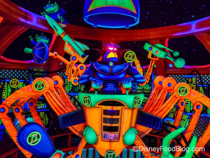 Buzz Lightyear’s Space Ranger Spin will be getting a new ride scene, new ride vehicles, a new character, and enhanced gameplay elements. Some of those gameplay elements include handheld blasters (soon you can shoot whenever you want!) and reactive targets. We got the chance to take a look at the new ride vehicle and test out the new blasters, and we have to say we were impressed!