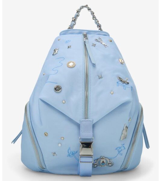 We are in love with this fun Princess backpack that’s Cinderella blue with subtle Cinderella details like a button, thread, birds, slipper, and more. It also has star and pearl studs. SO pretty!
