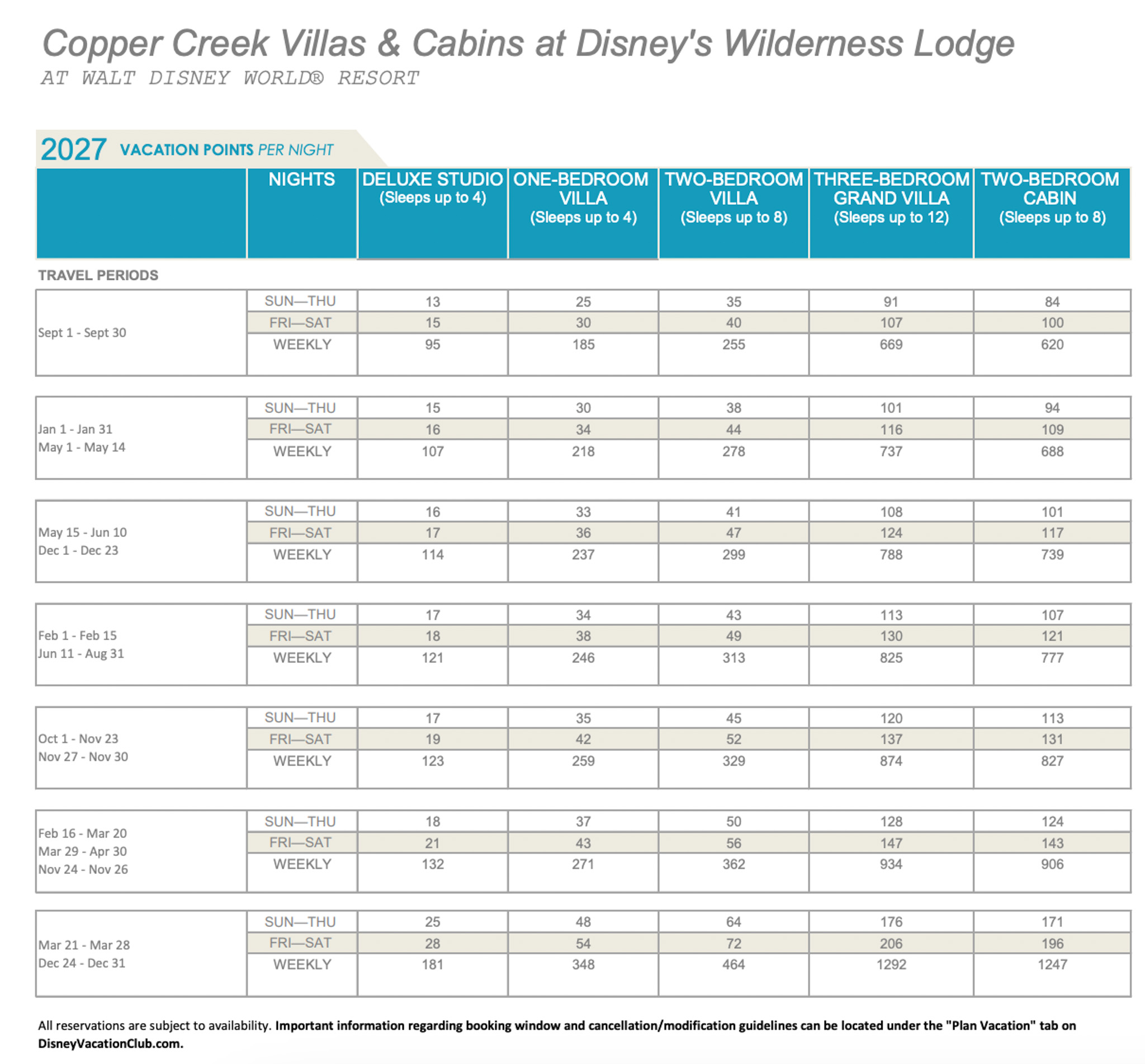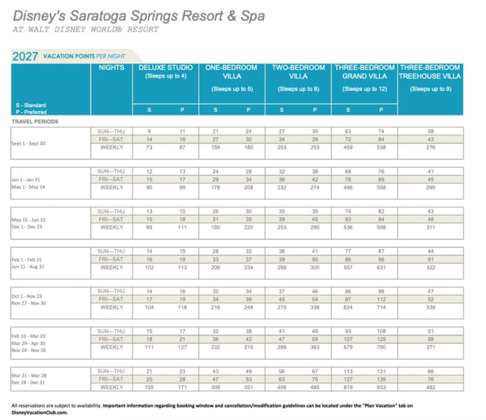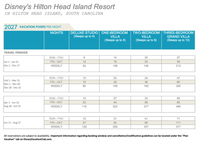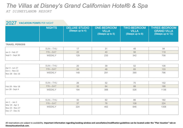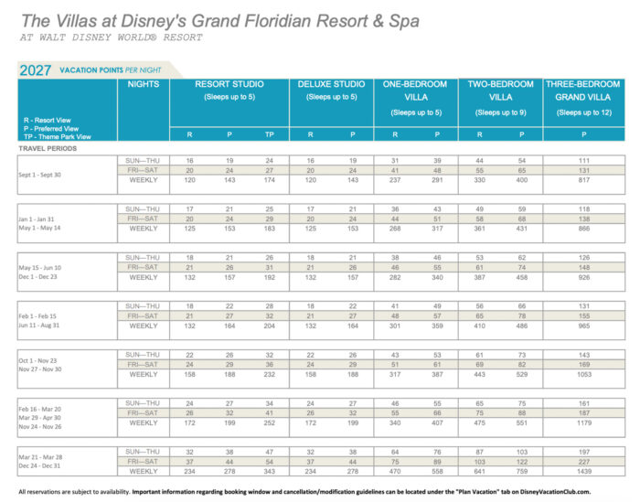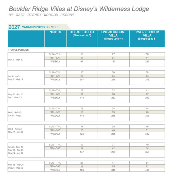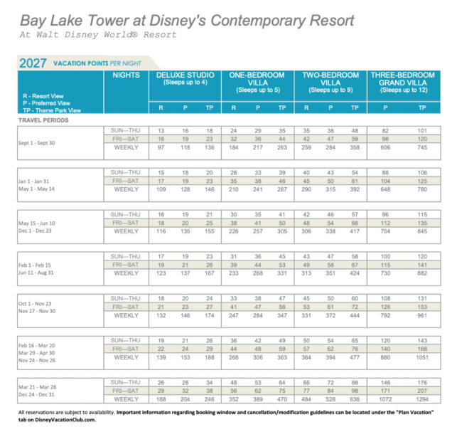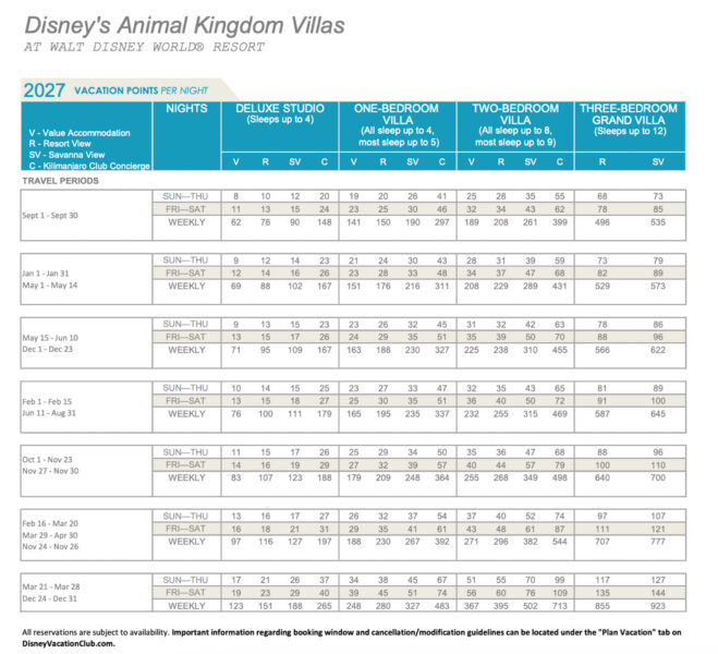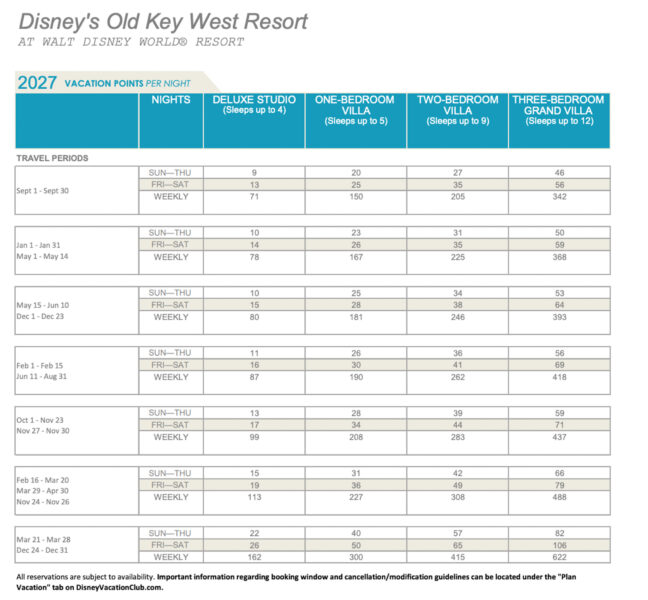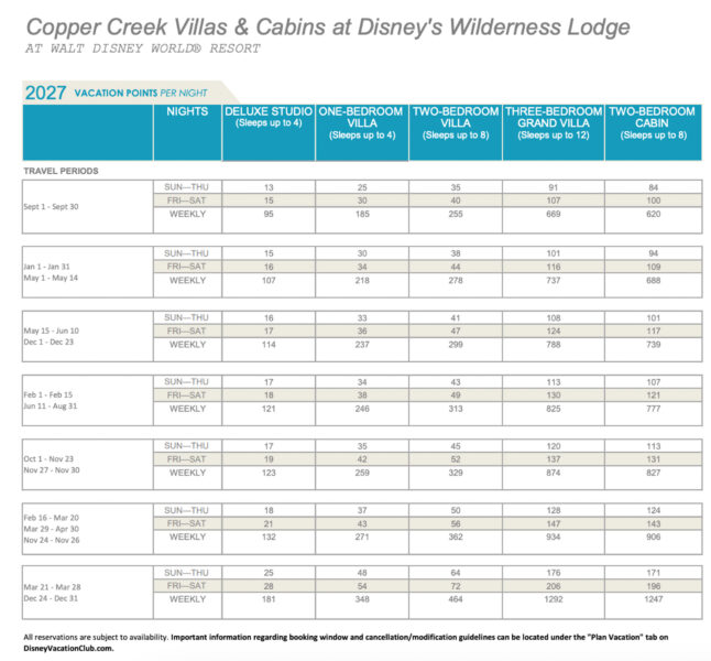 Disney has released the points charts for 2027 Disney Vacation Club (DVC) stays!