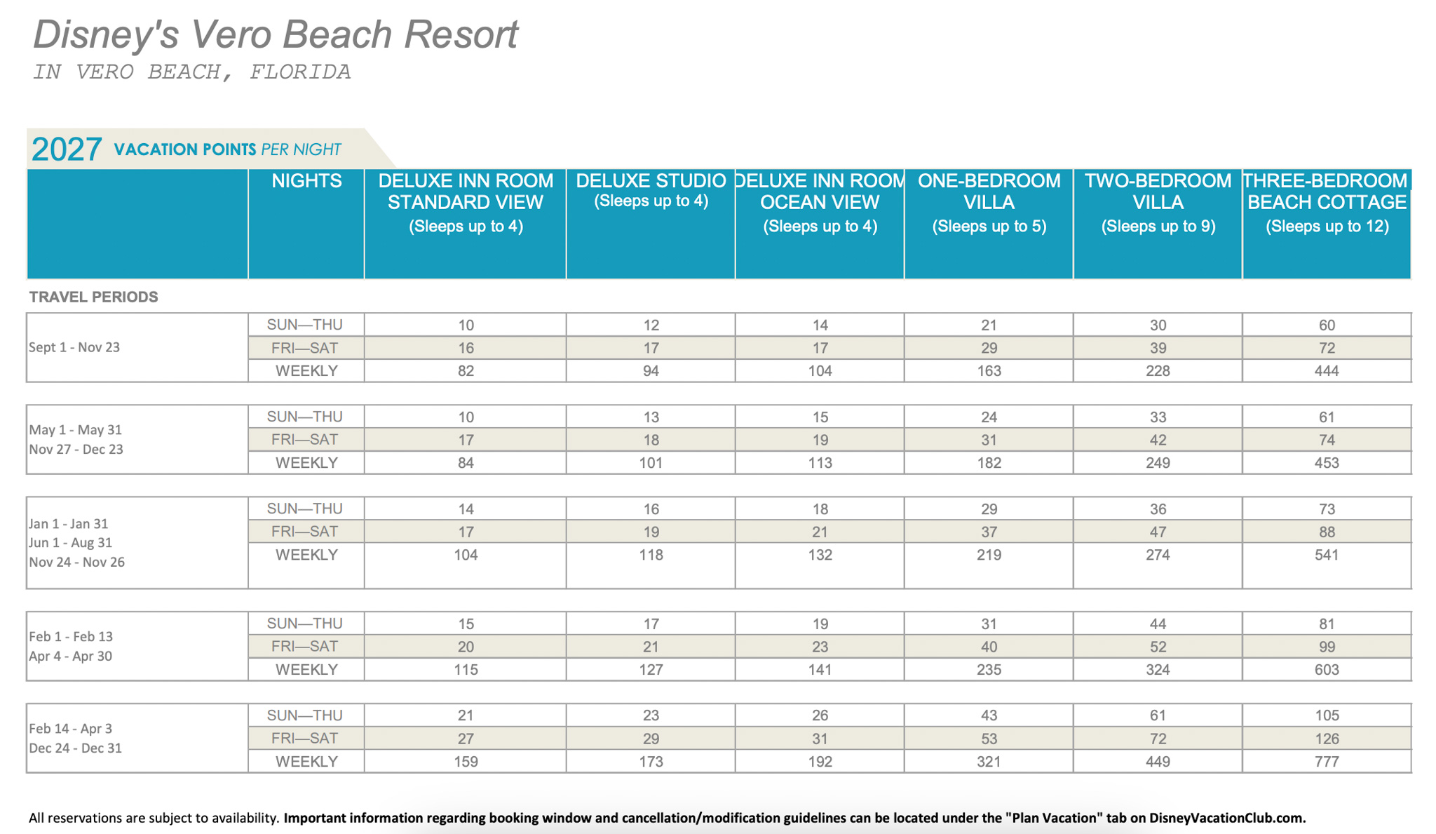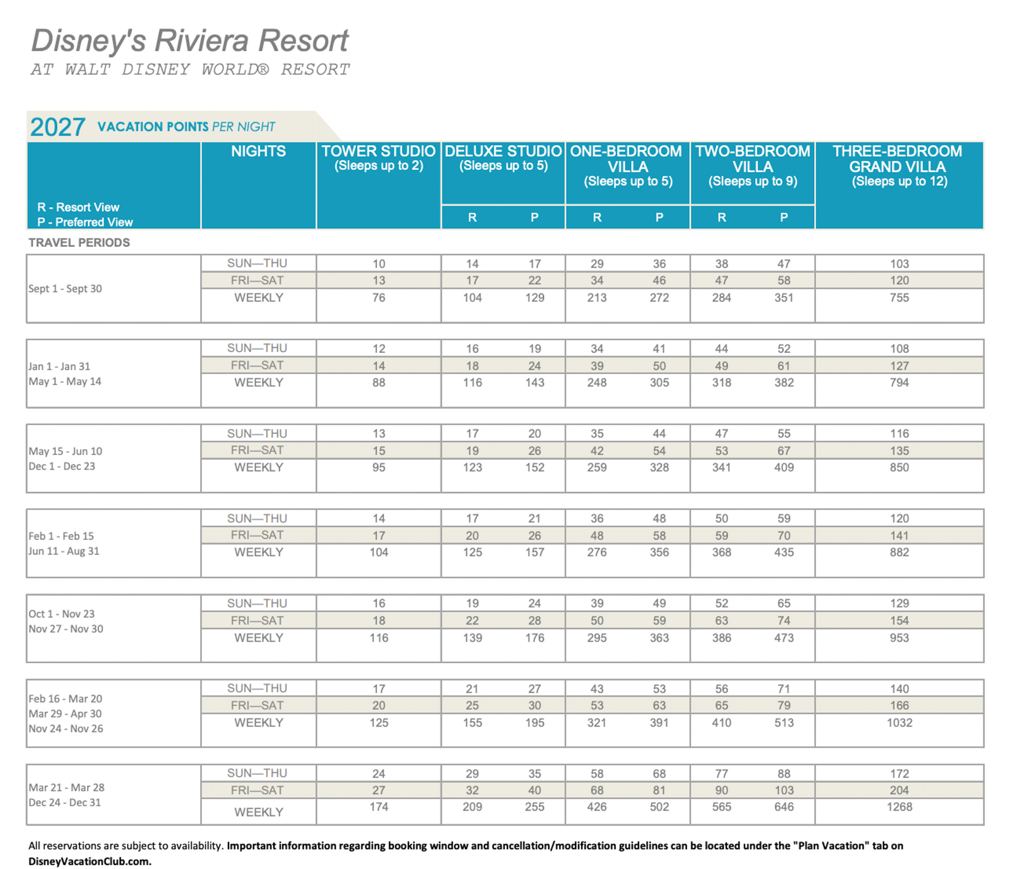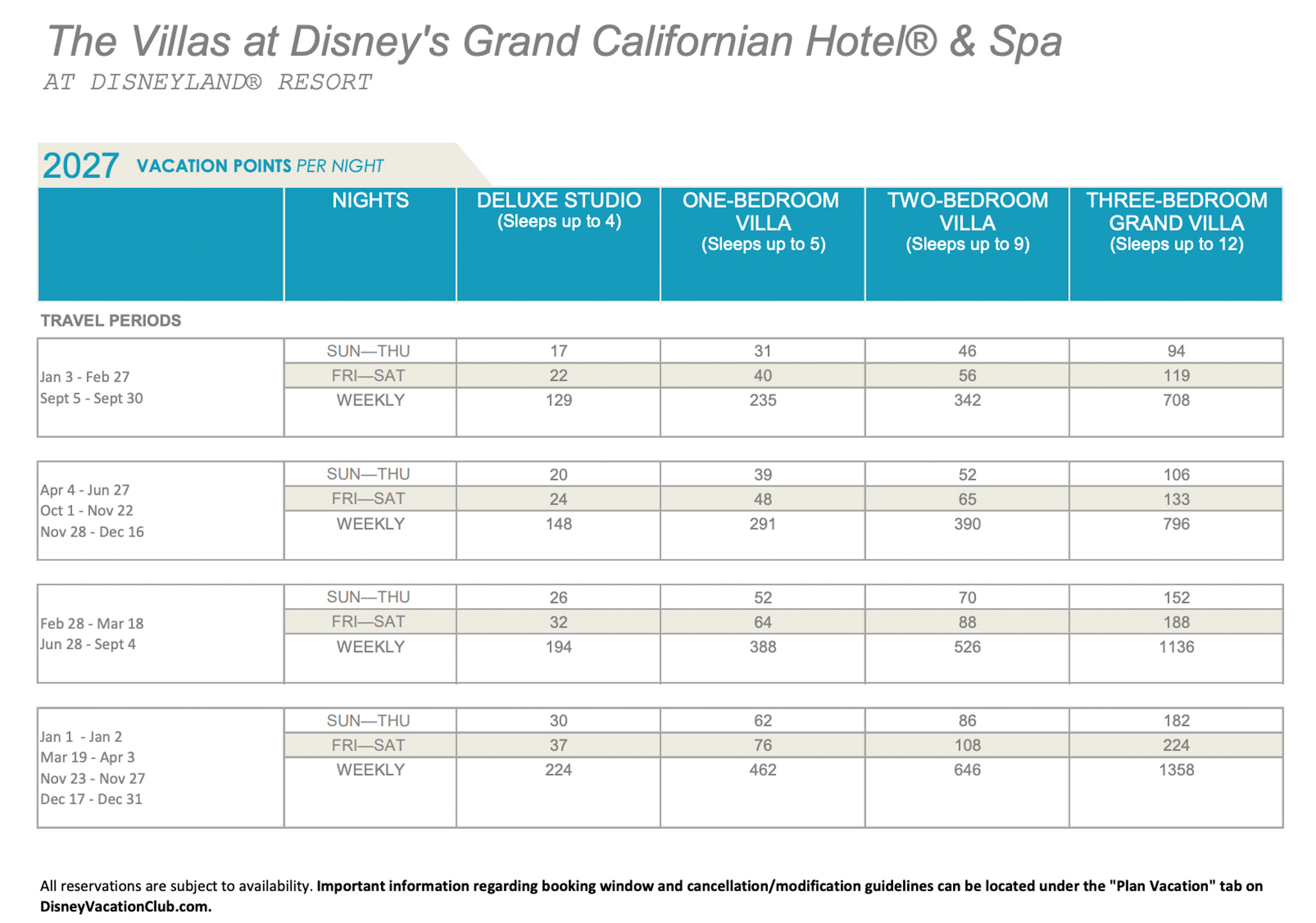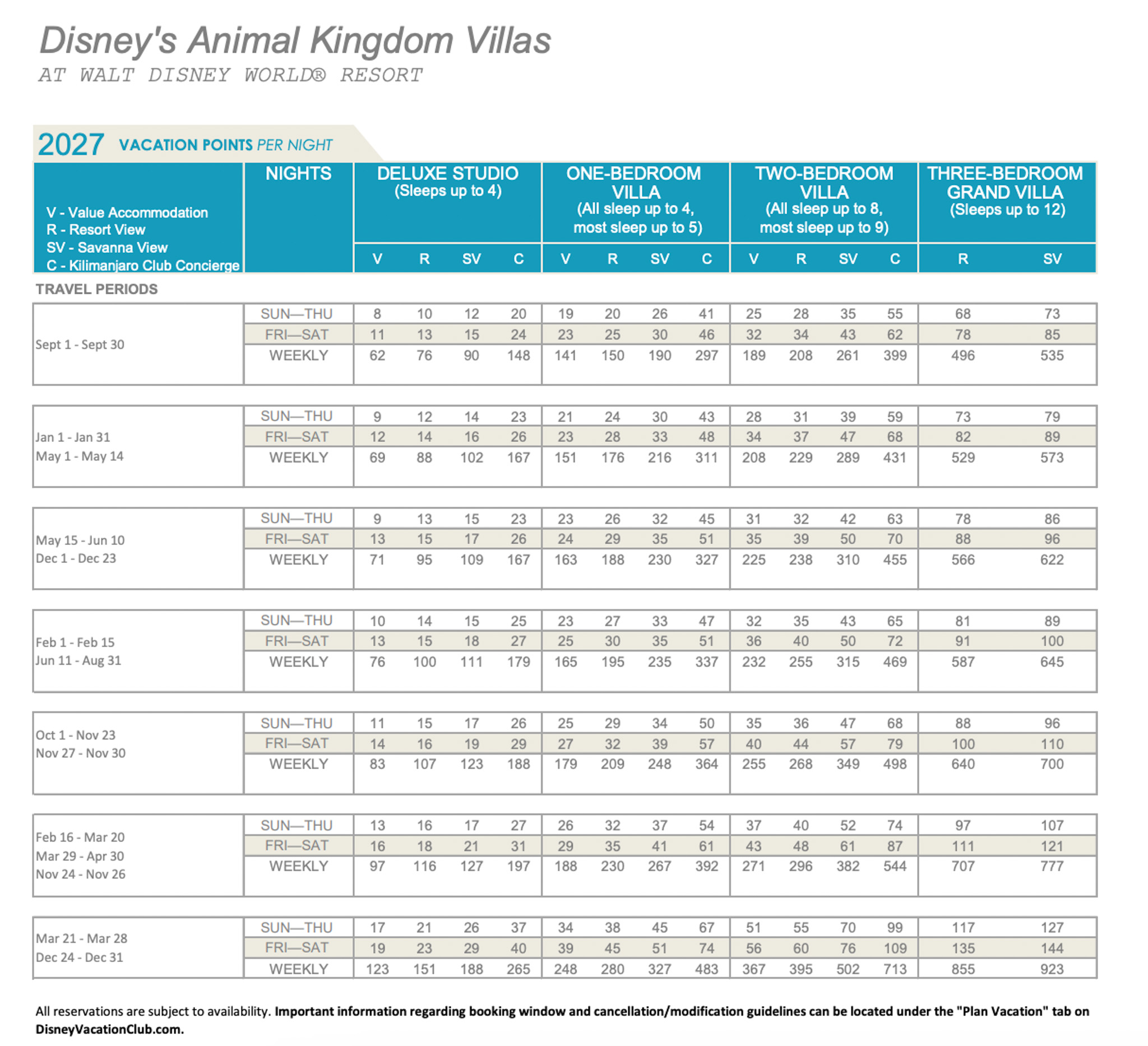 Disney has released the points charts for 2027 Disney Vacation Club (DVC) stays!