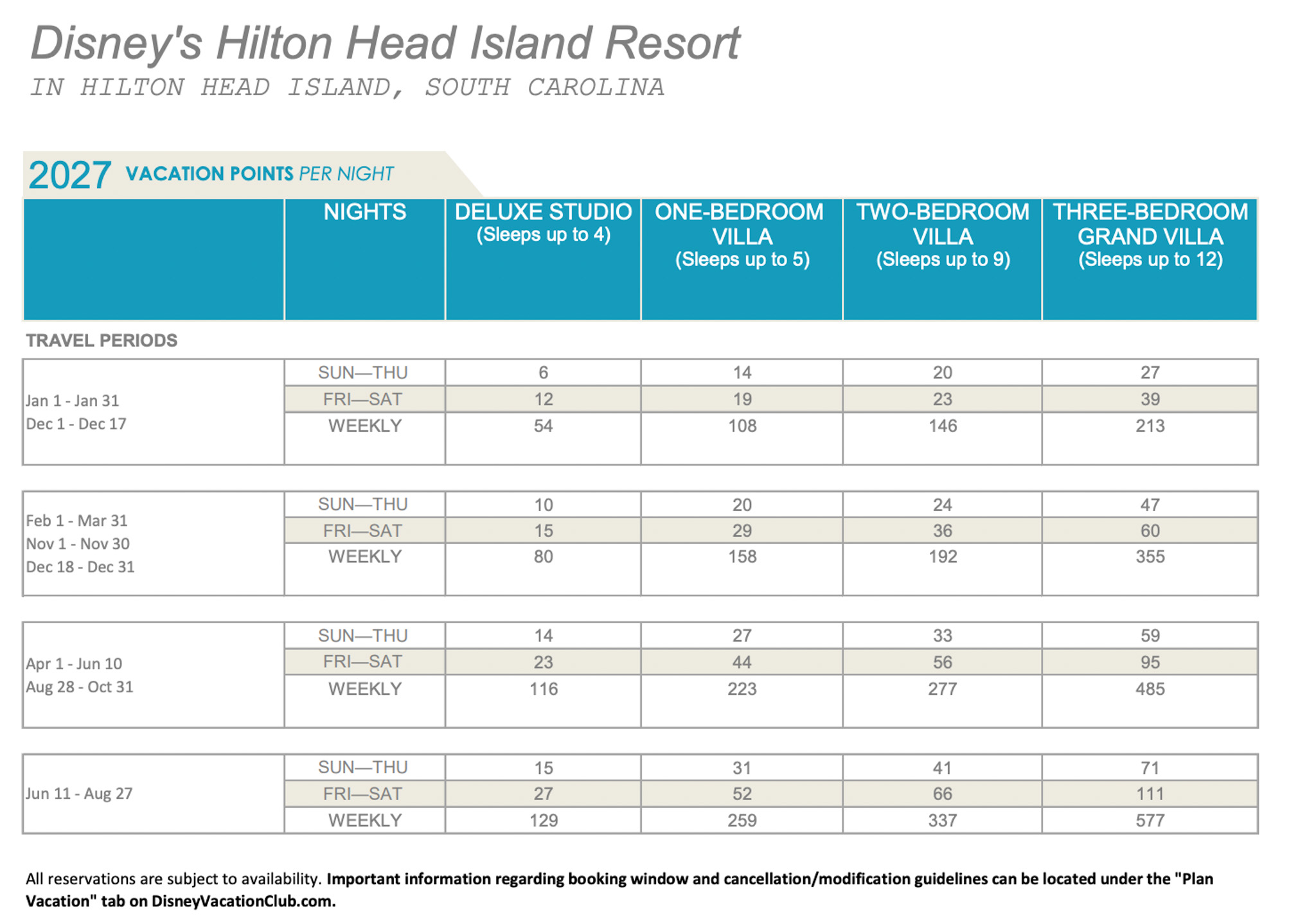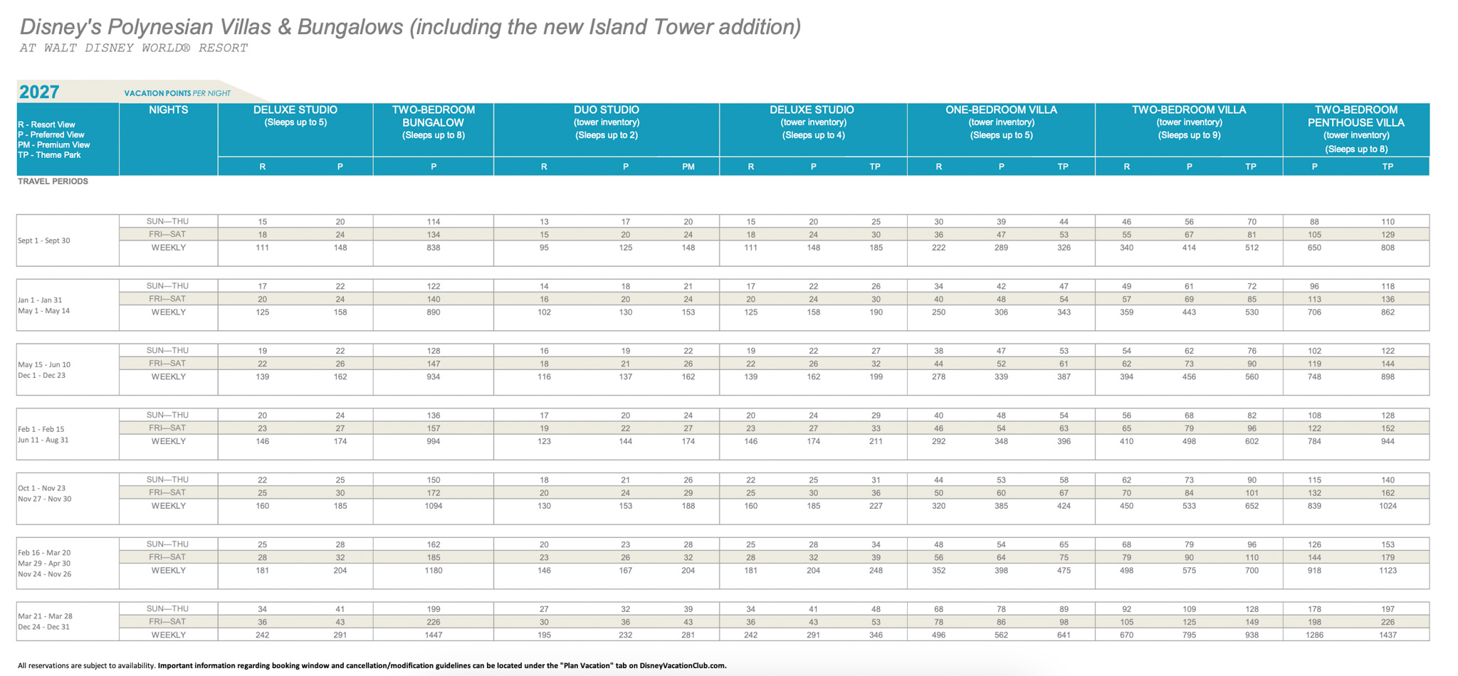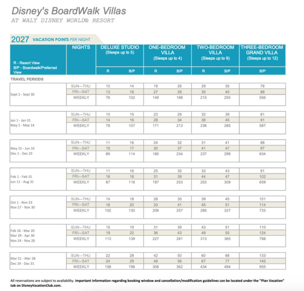 For more in-depth information on Disney Vacation Club, click here! Let’s check out those 2027 points charts.