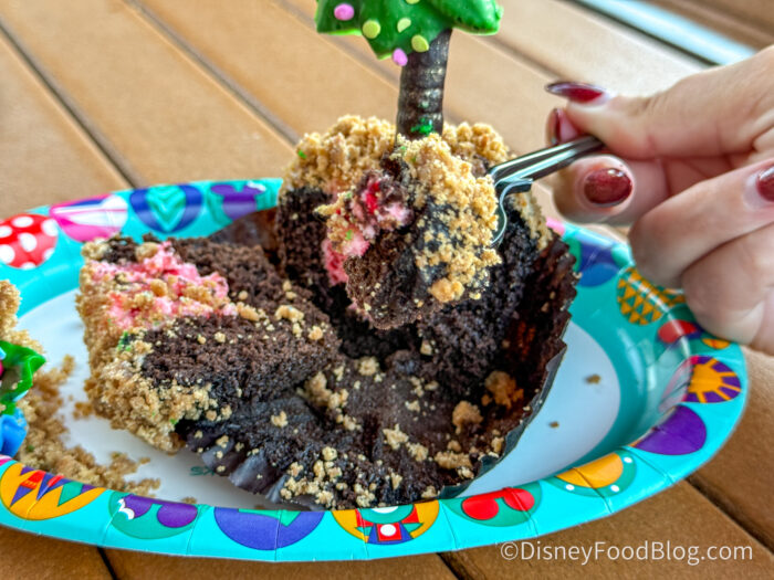 There is a peppermint center with peppermint flakes, and we appreciated the crumble on top. We think kids will love this fun treat, especially if you’re already eating at Capt. Cook’s, but we wouldn’t make a stop at the Polynesian to grab this if we weren’t staying here. Again, it tasted like a good chocolate cupcake, but we’ve had more unique desserts across Disney World.