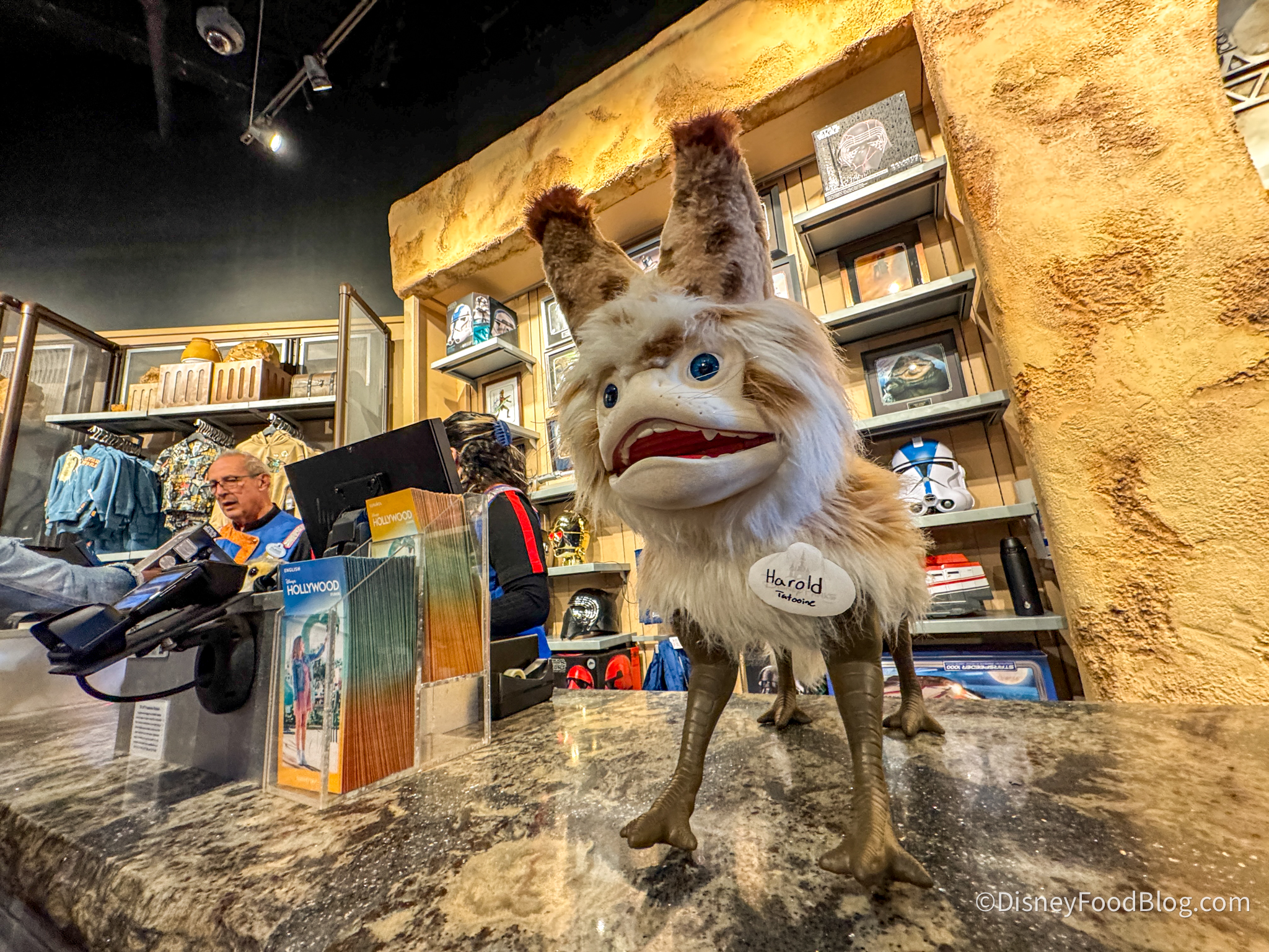 When we stepped in the other day, we were first drawn to a very friendly Cast Member and her Loth-cat named Harold, who isn’t for sale, but soon after, we DID spot two high-priced souvenirs that would make any Star Wars fan beyond thrilled.