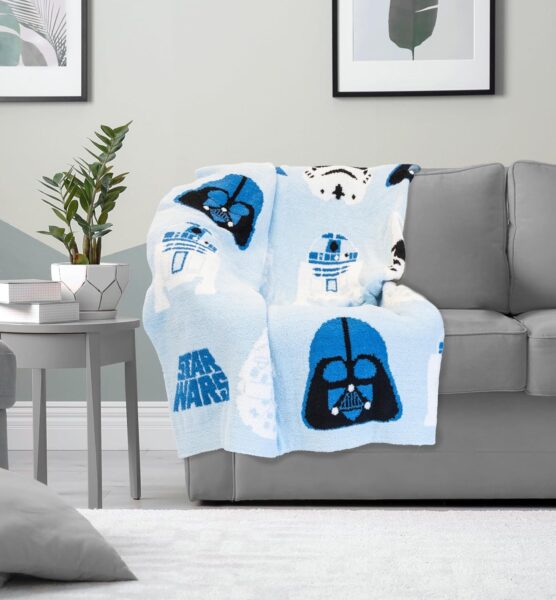 For the Star Wars fans who want their winter cozy but make it galactic, this one delivers. Featuring Darth Vader and R2-D2, this throw brings big movie night energy. It’s made from the same ultra-soft feather knit material, so it’s perfect for long binge sessions, naps, or just dramatically staring out the window like a misunderstood Sith. It’s lightweight, warm, and easy to wash, which means it’s practical and cool (a rare combo).