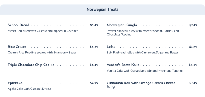 The menu offers all kinds of Norwegian baked goods, and we’re not playing when we say they all sound delicious!