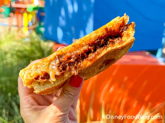 In our experience, this sandwich has offered super flavorful beef, rich and buttery garlic toast, and layers of flavor. We wish all Disney World sandwiches could be served on garlic toast!