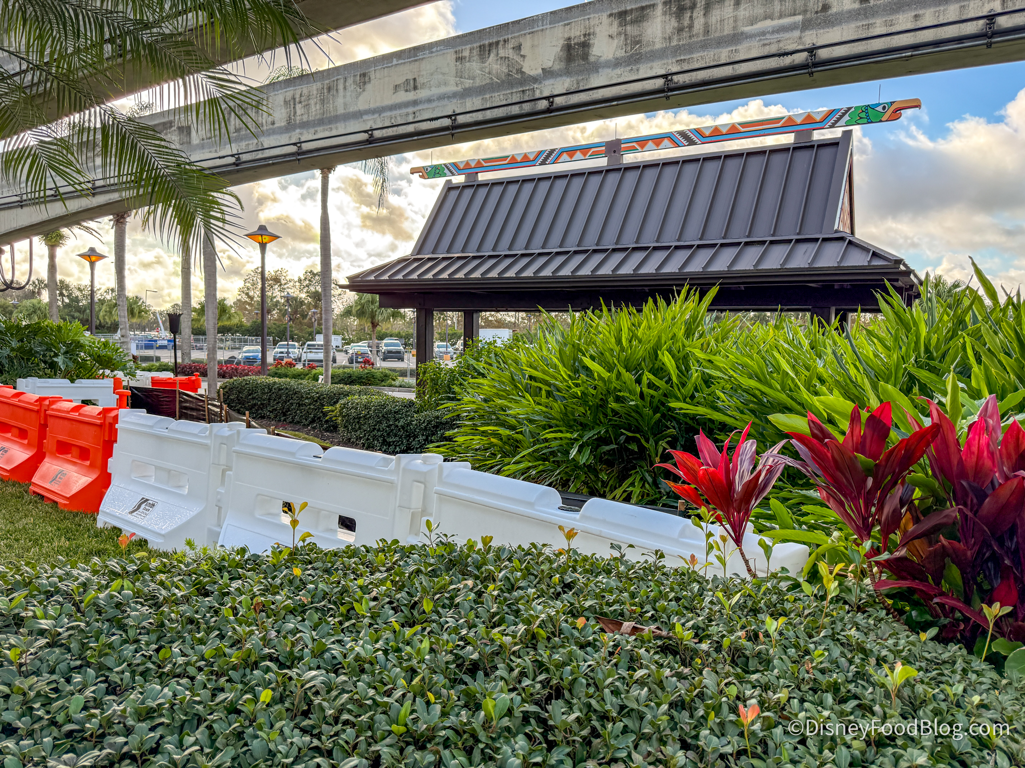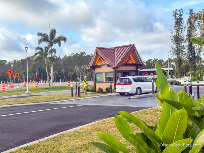 The new Polynesian Village Resort entrance starts off with the guard station, which looks just like the old one at the former entrance, which is currently blocked off.