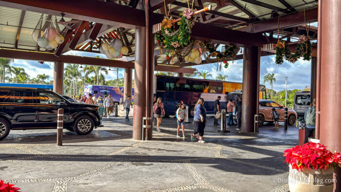 Now it’s important to note that the bus stop being at the front is causing a bit of a bottleneck situation right now with hotel buses arriving, then Mears, and even Disney Cruise Line transfers.