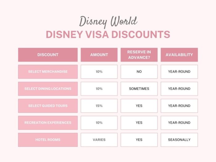 If you have this card, you can save so much money on practically everything during your next Disney World visit, and there’s hardly any need to pay full price again! We have created a chart so you can see all of the Disney Visa savings at Disney World. Just look at those savings! Take a peek and make sure you aren’t missing out!