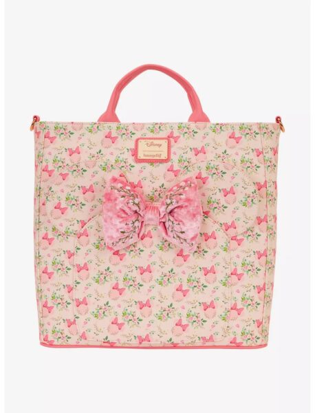 If you love the Loungefly mini backpack, you’ll love the matching Minnie Mouse Floral Loungefly Tote Bag! Just like the backpack, this is printed with a floral Minnie Mouse pattern and features a velvet bow. The bag also has figural ears on the front pocket, top handles, and removable backpack straps.