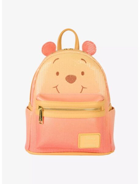Lastly, there’s this Mickey Mouse Loungefly Backpack! This bag reminds us of the Winnie the Pooh bag we showed you a little earlier — just in Mickey style. The bag has a sequin body and is printed with an ombre design featuring figural Mickey ears. It has removable adjustable straps, making it perfect as a mini backpack or crossbody bag.