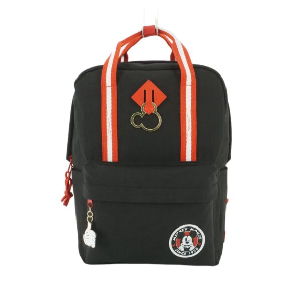 The online-exclusive Mickey Mouse Logo Cotton Canvas Black Mini Backpack features a Mickey Mouse logo, a durable cotton canvas material, a front zip pocket with a Mickey glove charm, and a main compartment with a snap button closure for the top handle. Stylish and practical, this bag looks great and keeps you organized whether you’re at the Disney Parks or simply out and about!