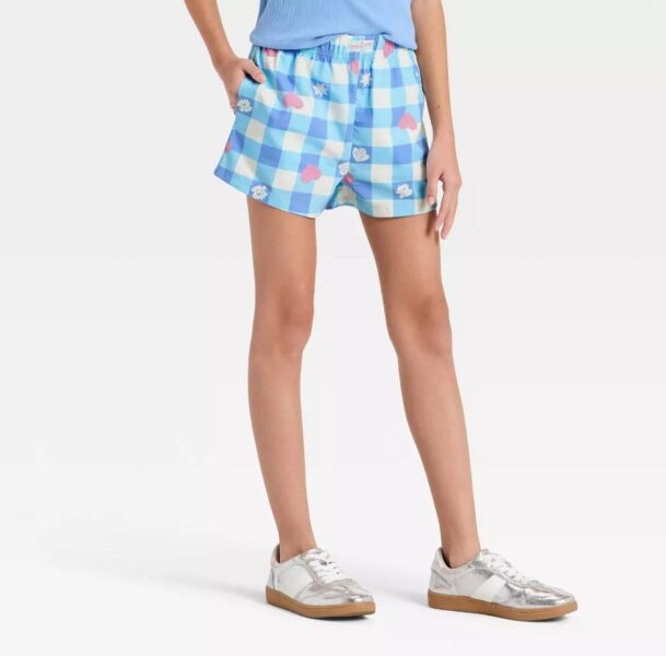 The Girls’ Disney Princess Checked Woven Shorts come in blue and are available in many different sizes. These checkered shorts also sport some fun floral images that represent beloved Disney Princesses!