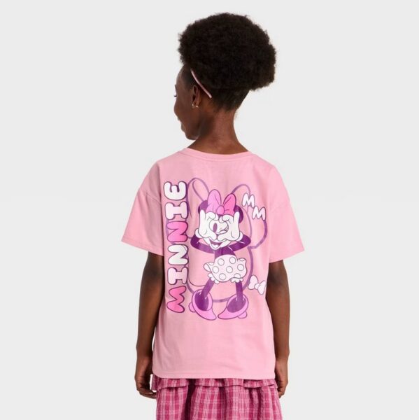 This new Girls’ Minnie Mouse Oversized Front and Back Graphic Short Sleeve T-Shirt is available in several sizes and comes in pink. The front has a little inscription that reads “Do What Makes You Happy” with three pink bows, but the back is the star and features Minnie herself!