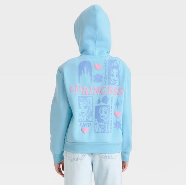 The Girls’ Disney Princess Front and Back Graphic Hoodie Pullover Sweatshirt comes in blue in several sizes and showcases Tiana, Belle, and Rapunzel on both the front and back!You can now get these NEW shorts online!