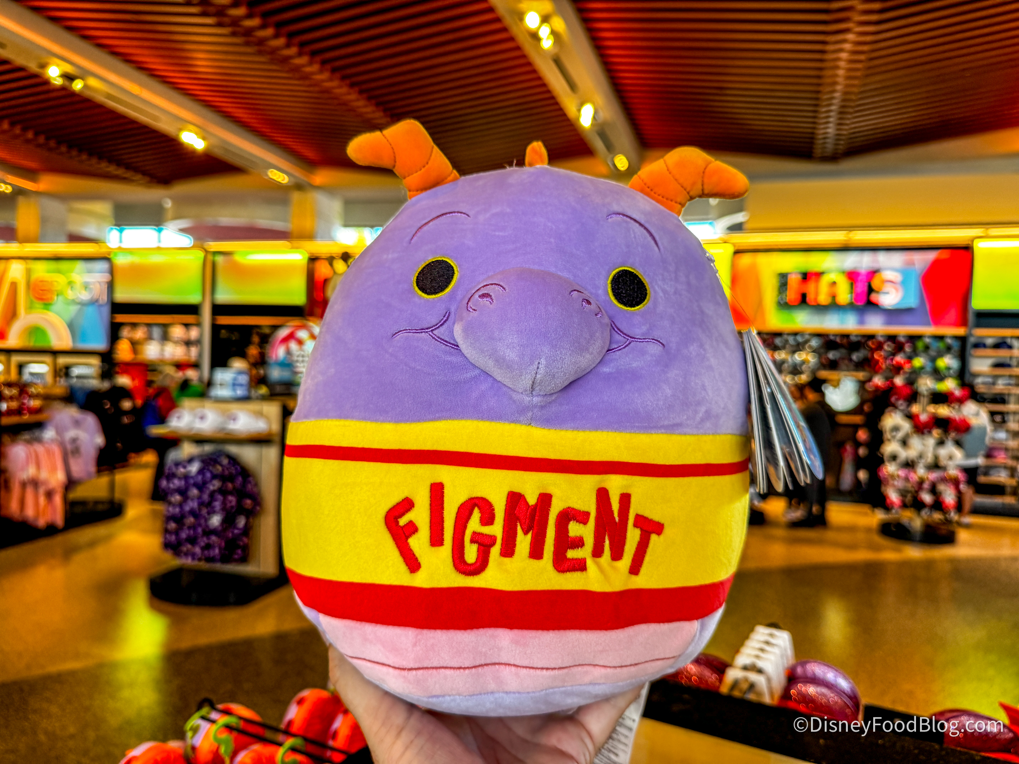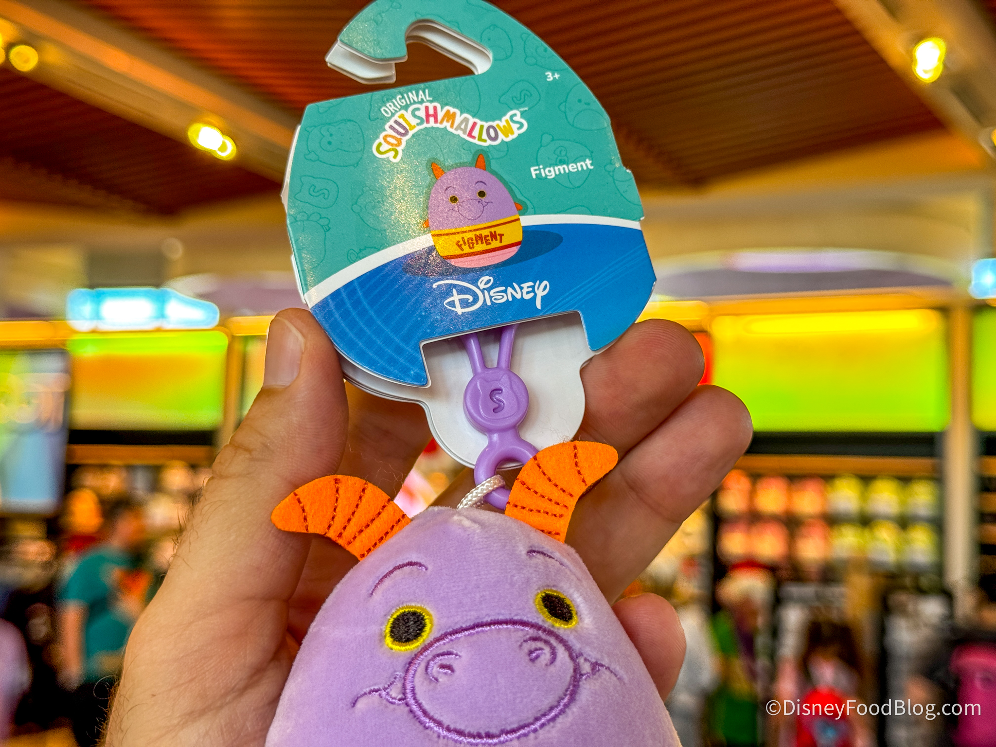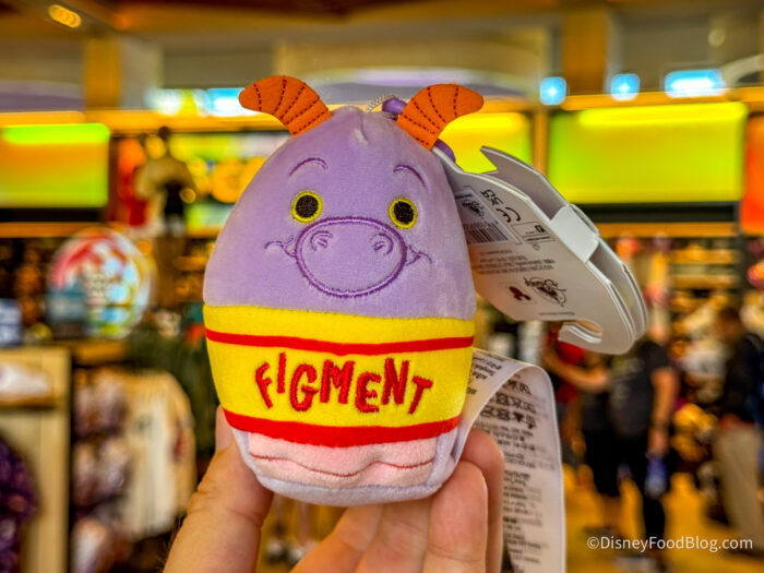 Over at Creations Shop, which is the main shopping location in the park, we spotted the new Figment Squishmallow Keychain! He’s cute as can be, but he is pretty expensive at $16.99.