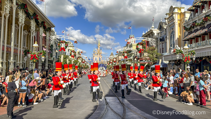 You can only catch this parade during regular park hours from December 22nd through December 31st, so plan accordingly. It follows the same route as the Festival of Fantasy parade: the parade starts in Frontierland and exits the park on Main Street, U.S.A. We love Main Street, U.S.A. to see the parade with the castle in the background, but there really isn’t a bad spot along the route to watch!