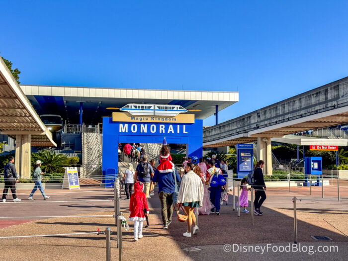 On December 23rd, getting a little closer to Christmas, we were greeted with fewer crowds than expected as soon as we got to the Transportation & Ticket Center, which is where you can park for Magic Kingdom before taking the ferryboat or monorail to the park. It’s pretty debated with our team at DFB if it’s faster to take the monorail or ferryboat, but I say that a packed ferryboat is better than a packed monorail, and if you can go to the second floor, there is usually more space. The ferryboat gives you more fresh air, even if the route is a little longer.