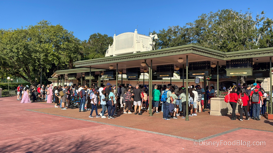 Transportation lines got pretty long, but there wasn’t much clutter at the entrance. To help the line go faster, make sure you have your MagicBands connected to your account or the ticket card for each person. You’ll need to scan your card or MagicBand and then your fingerprint, so make sure the ticket matches the person scanning in.