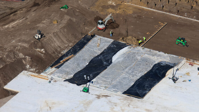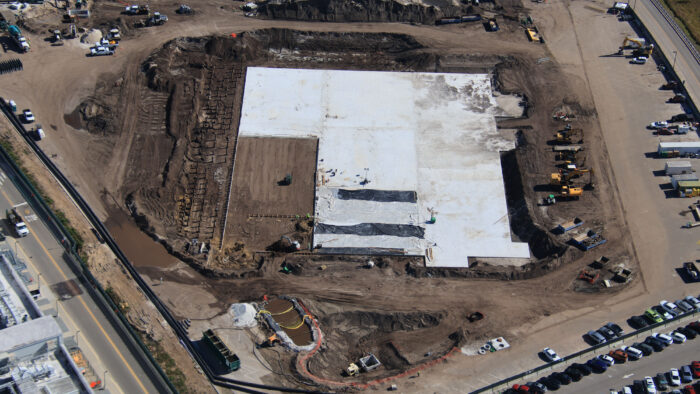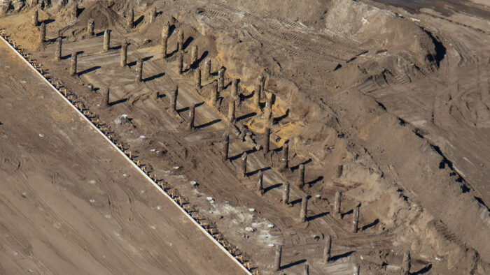Here’s another look at the concrete floor. According to @bioreconstruct: “An auger was in this site, worked right to left (in this viewpoint) to drill holes that were filled with concrete. Resulting pilings partially excavated at left. Cut to height, floor cast on top.” Again, we’re blown away by the sheer size of this attraction.