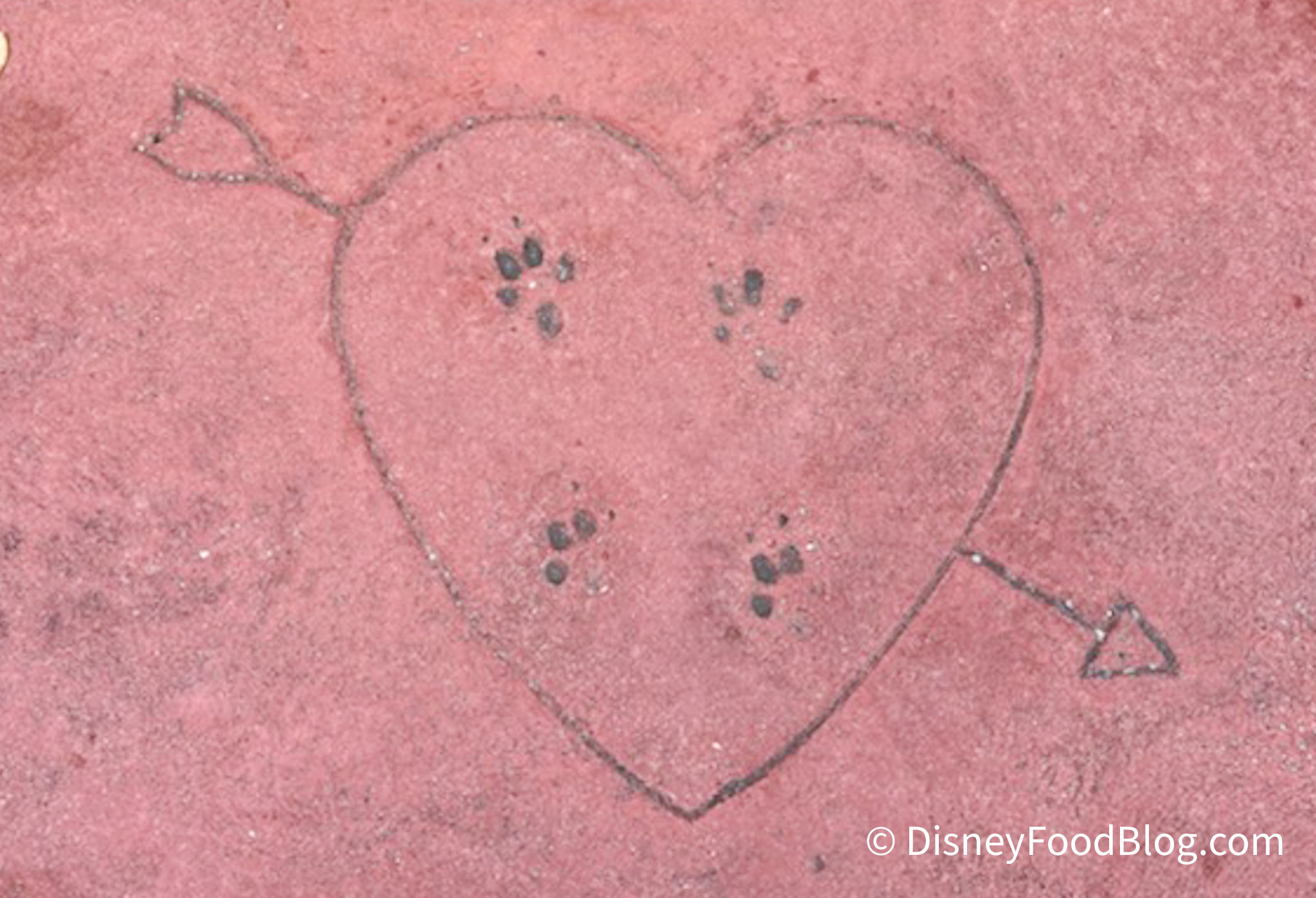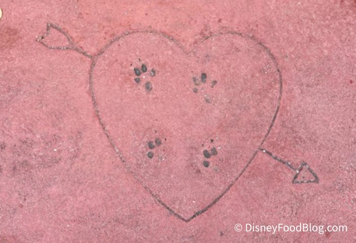 In fact, there are several nods to the film inside and outside the restaurant, starting with these concrete pawprints out front near stroller parking.