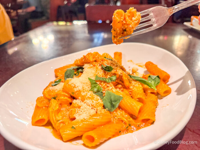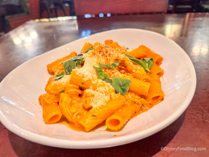 For my entrée, I snagged the Rigatoni alla Vodka for $26. It’s Rigatoni tossed in a Classic Tomato-Vodka Sauce topped with Citrus-Herb Breadcrumbs.
