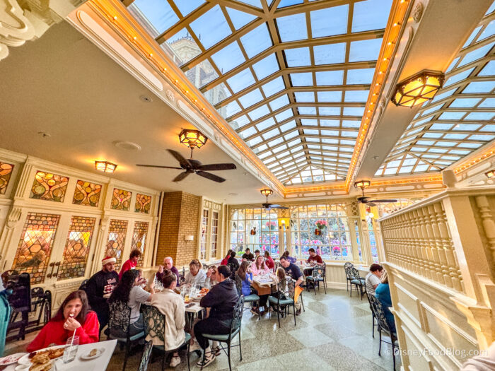 …while the porch is bright and sunny with a great view of the park. If you can dine here during the parade and get seated in the sunroom, it’s like a fun secret hack!