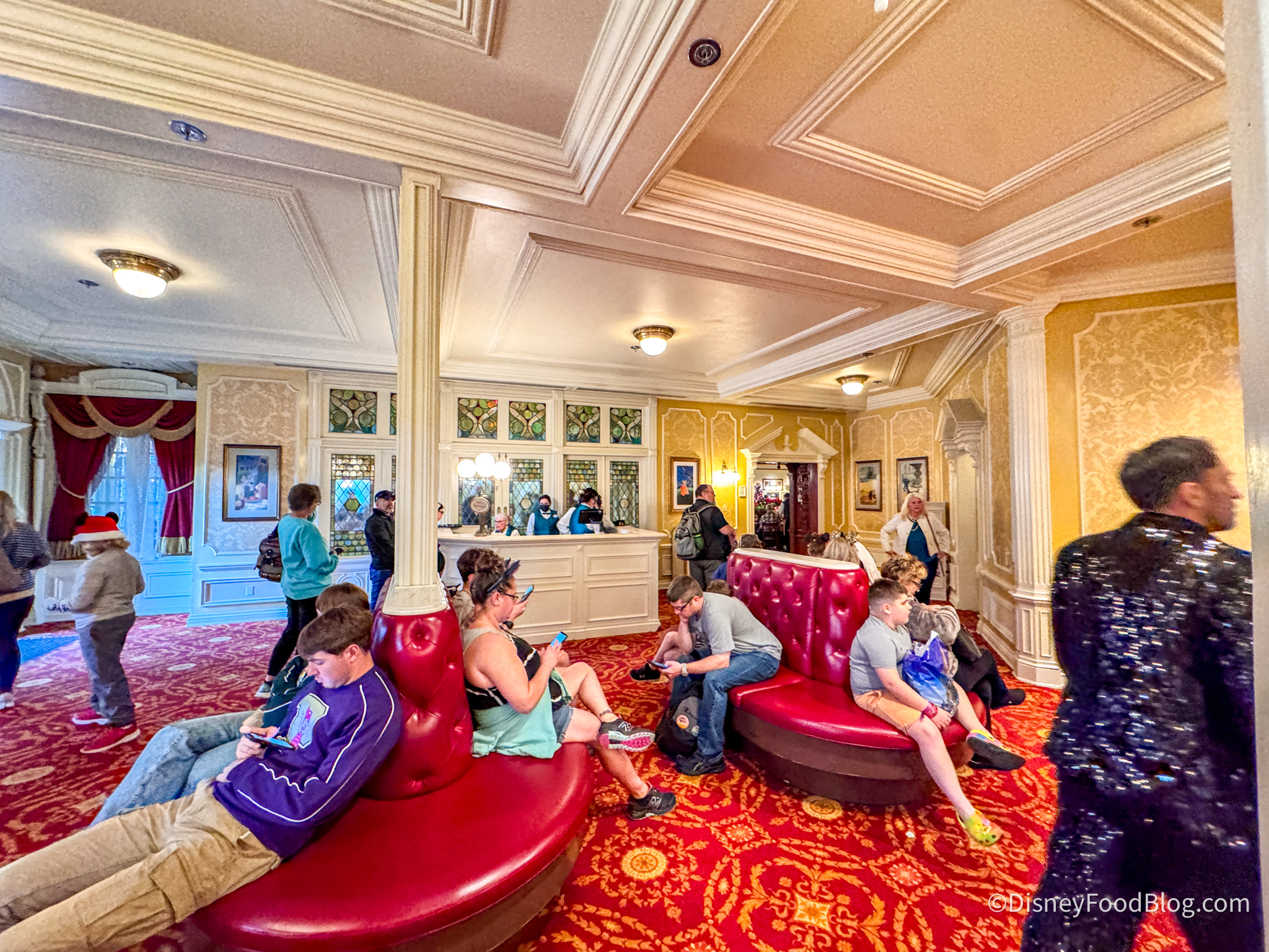To enter the restaurant, you’ll go into the Town Square Theater and turn left before you hit the Mickey Mouse meet and greet. They’ve got a small host’s stand and waiting area in here.