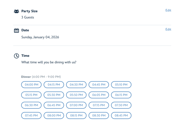 Does this mean it’s possible that we won’t see lunch reservations for 2026 at all? We have no way of knowing that right now since Disney hasn’t announced any changes officially, but for now, we know that for almost all of January and February, lunch won’t be an option. If you have your heart set on dining at this spot, we suggest moving around your other plans to ensure you can eat here for dinner.