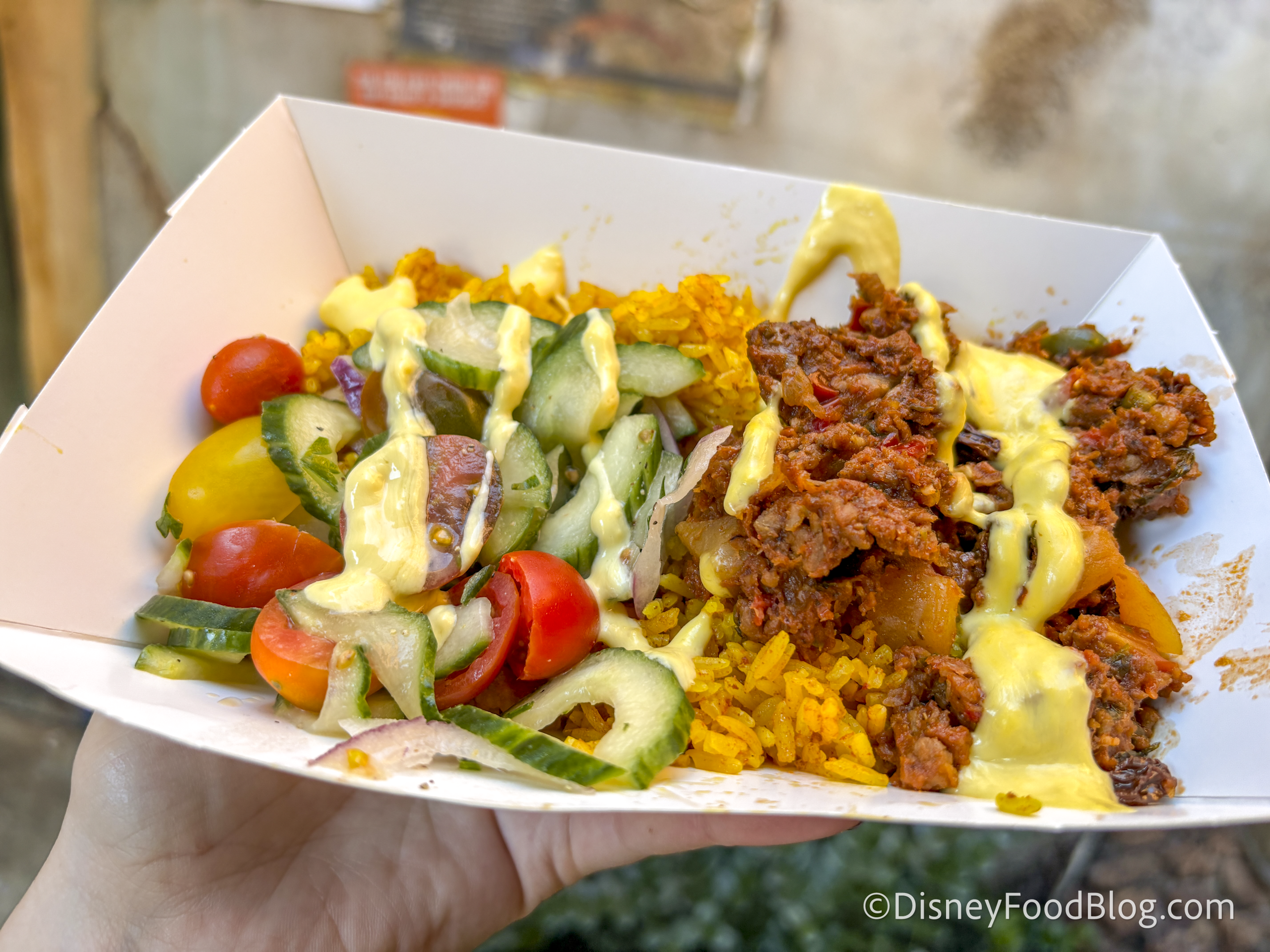 You can find Kusafiri Coffee Shop & Bakery just outside the entrance of Kilimanjaro Safaris. The window service restaurant is right across from the bathrooms. It is a bit hidden, but look for the register out front or the window on the side of the building. You can grab breakfast, lunch, or dinner here, but make sure you double-check the hours as it isn’t always open the entire time Animal Kingdom is open.