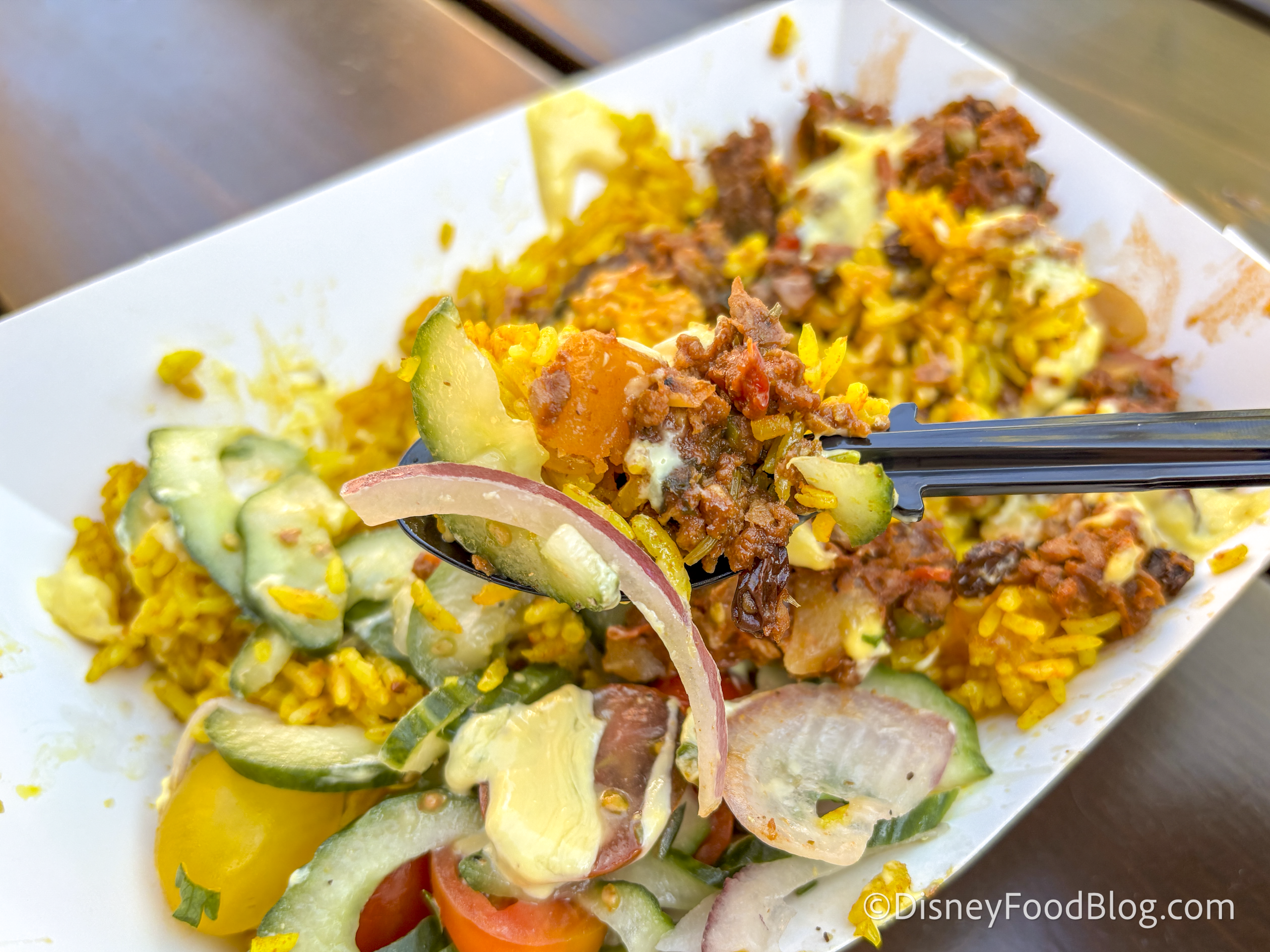 We also got the Plant-based Picadillo Bowl for $12.99. It is plant-based picadillo featuring Impossible® Beef on jollof rice with kuchumbari tomato salad and plant-based aïoli. On the other hand, while the Harissa Chicken Wrap was bland, we thought this bowl was full of spiced flavor. It wasn’t spicy, but there was a lot of rich tomato and cumin flavor.