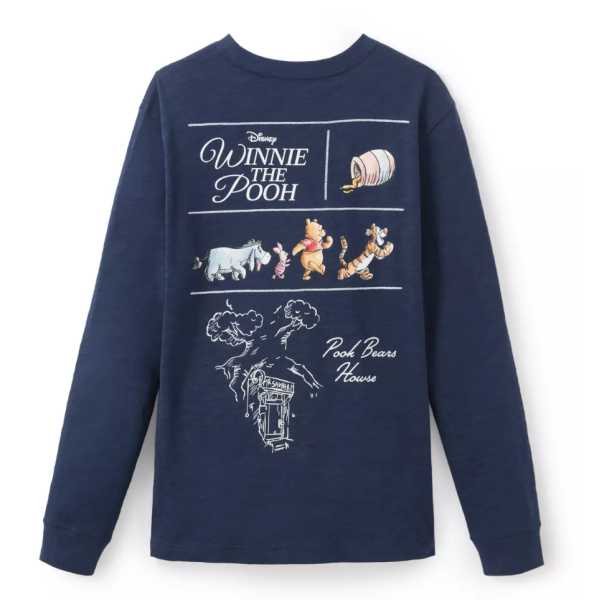 Not chilly enough where you are for a sweatshirt, but too cold for short sleeves? The Winnie the Pooh and Pals Long Sleeve T-Shirt is calling your name then. It’s a dark blue color, and while you’ll see just Pooh with his honey on the right breast pocket, the back has more details, including the Winnie the Pooh logo, some of your favorite characters, and a sketch of Pooh Bear’s house.