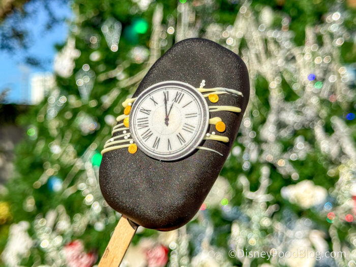 We also grabbed the Countdown to Midnight Cake Bar for $8.75 at Amorette’s Patisserie in Disney Springs. It’s chocolate chiffon with chocolate mousse and mini chocolate chips.