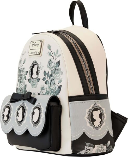 This bag feels like it belongs in a vintage Disney movie theater lobby (we mean that in the best way). The cameo portraits open to reveal castle scenes inside, which is such a fun interactive detail. Snow White, Cinderella, Ariel, Tiana, Belle, and Jasmine all make appearances, but in a much more subtle, classy way. If you love princesses but don’t want bright colors or glitter everywhere, this is an excellent choice.