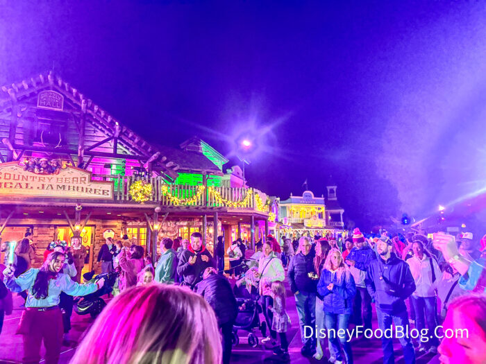 Throughout Magic Kingdom, you’ll be able to find dance parties like this one in Frontierland! They have DJs, special lighting, and so many people.