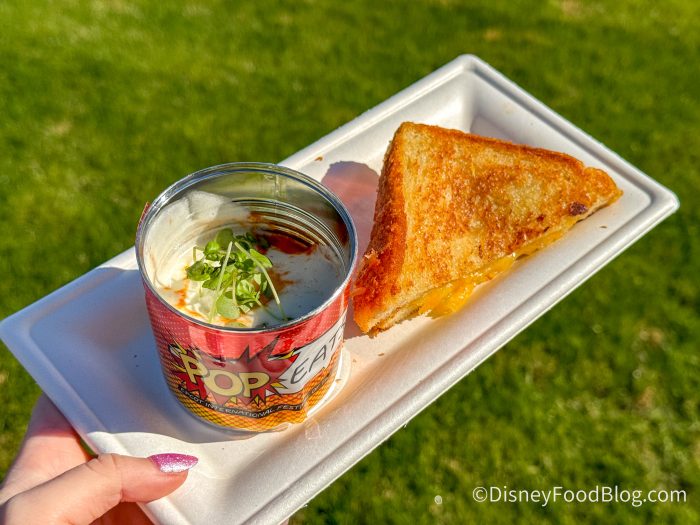 - Tomato Soup with pimento cheese, bacon, and fried green tomato grilled cheese – $6.75, DDP Snack Eligible
