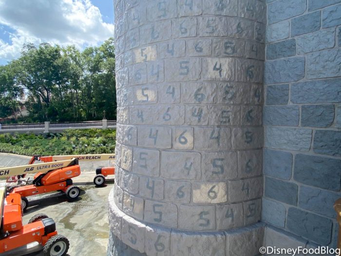 If you’re curious how Disney repaints such a massive structure, we got a little insight back when it was painted to its current color scheme. Believe it or not, it’s a paint-by-number situation in that Disney assigns different numbers to the “bricks” of the castle so it knows which colors go where. Here’s a close-up of those numbers and how they were used when the castle was previously painted. Cool, right?