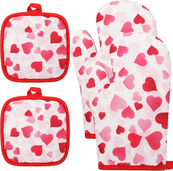 Amazon also has a 4-Piece Oven Mitt and Potholder Set available! The kitchen essentials are decorated in pink and red hearts. For what you get, the price is seriously something you can’t pass up on.