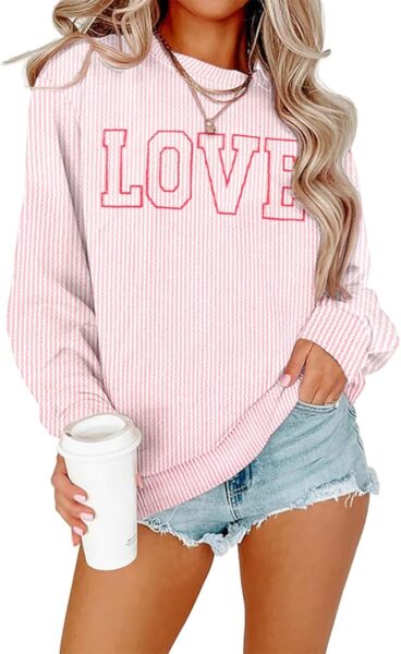 You can also snag this Valentine’s Sweatshirt from Amazon! It’s made from a soft and cozy blend of Ribbed Textured Knit, ensuring a soft, breathable, and stretchy feel. On it is printed the word “love”. You’re going to love the price for this thing!