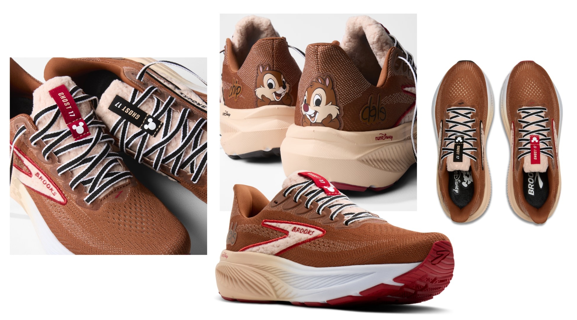 You can also get the Ghost 17 Chip n’ Dale Shoes featuring everyone’s favorite chipmunks for $170. These shoes are done up in Chip ‘n’ Dale’s signature colors, with one shoe having black stitching and Chip, and the other shoe having red stitching and Dale. TOO cute. They even have a fuzzy tongue.