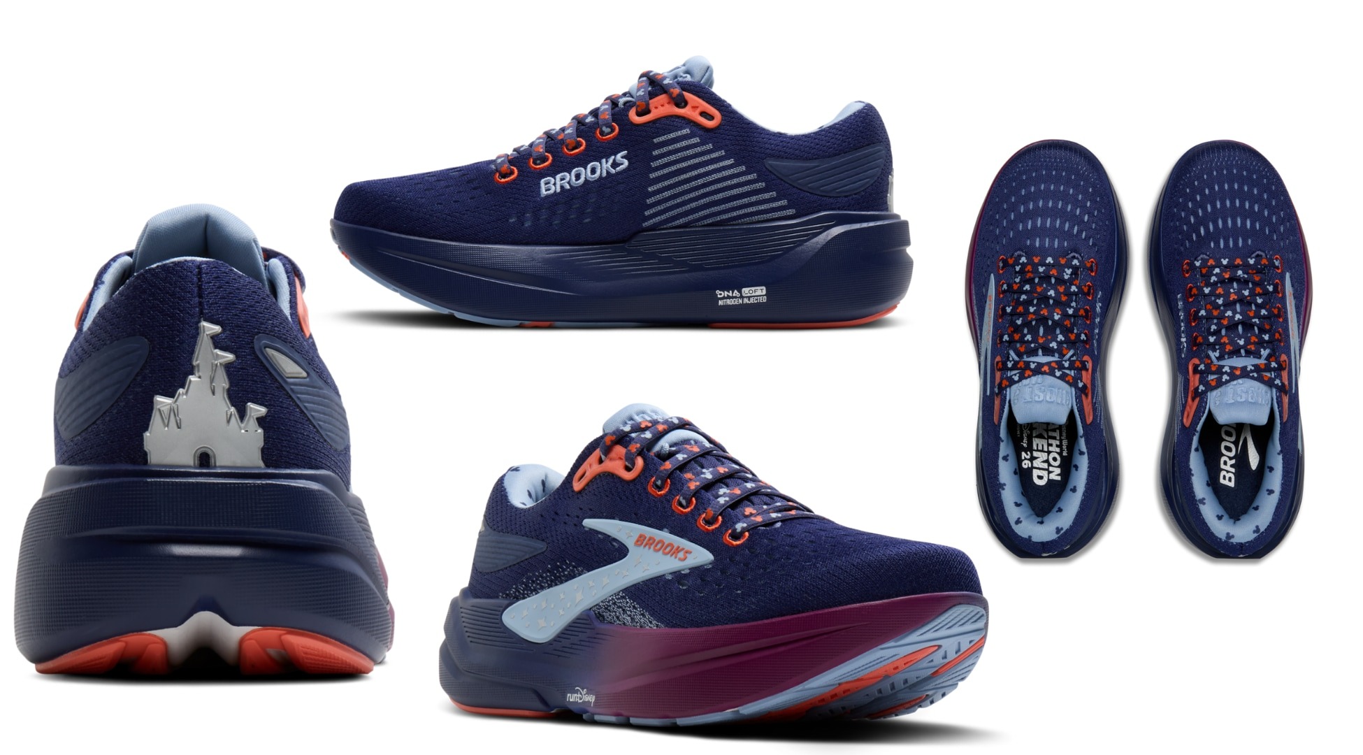 Brooks has collaborated with Disney to bring some brand-new limited-edition runDisney shoes to the 2026 Walt Disney World Marathon Weekend, which is happening in Disney World from January 7th through January 11th. The shoes are designed to provide everything you need from a running shoe, along with that classic Disney storytelling. There are the Adrenaline GTS 25 runDisney shoes for $165 with a special runDisney design and a gradient blue and white color scheme. You’ll also find some subtle Mickeys on the shoes, too.