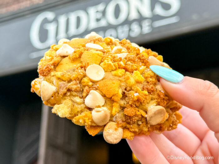 We were at Disney Springs yesterday and hit Gideon’s. I got the new banana cookie. It was absolutely delicious. To me the cookie part reminded me of a super dense banana cake. So good. I’m going back for more……
